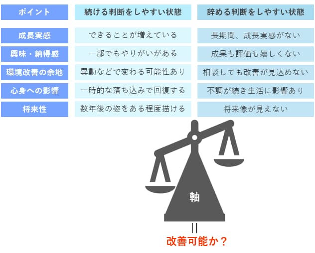 - 仕事を続けるべきか辞めるべきかの判断基準