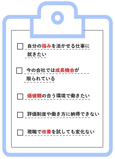 たとえば、「人と話して課題を聞くのは得意なのに、既存業務では単純作業ばかり」というように、自分の強みを活かせていない人は、顧客折衝の多い職種へ移ることで適性が活きる可能性があります。