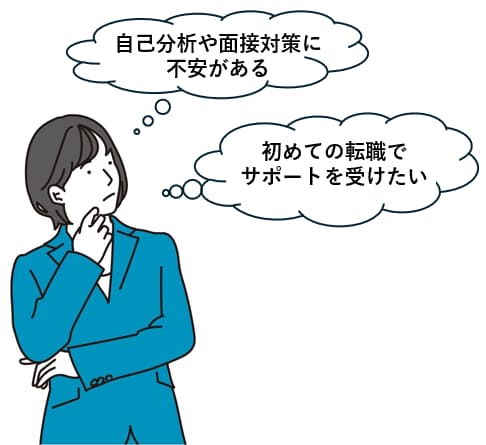 例えば現職との両立の忙しさで転職が思うように進められていない人や、初めての転職で何をしたらいいかわからない人、応募書類や面接の準備に不安がある人、またそもそも転職するべきか悩んでいる人などが当てはまります。