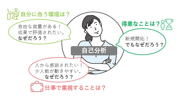 自己分析において重要なのは、どんな手法を用いた場合でも「なぜ?」と深掘りをすることです。1回だけでなく、可能なら5回程度「なぜ?」と掘り下げることで、自分の真の価値観を見つけることができます。