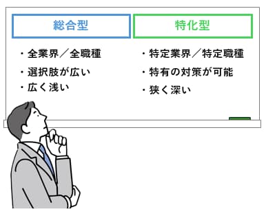 転職エージェントは、「総合型」と「特化型」があります。
