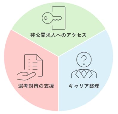 一般公開すると人気すぎる求人や、応募条件の縛りが多い求人などがよく非公開にされており、これらの非公開求人にアクセスできるようになります。