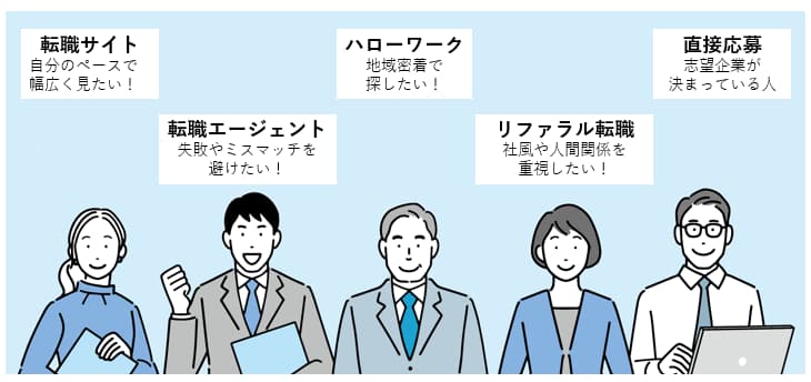 転職方法ごとの特徴を理解することで、効率的に求人を比較できます。ここでは、代表的な5つの方法を「向いている人」の視点で整理します。