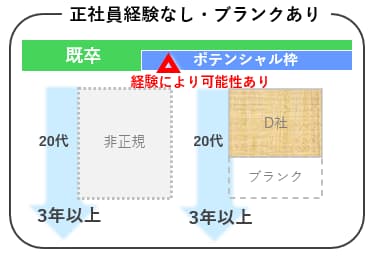 「大学・専門学校などを卒業後3年以内で、正社員としての就業経験がある人」