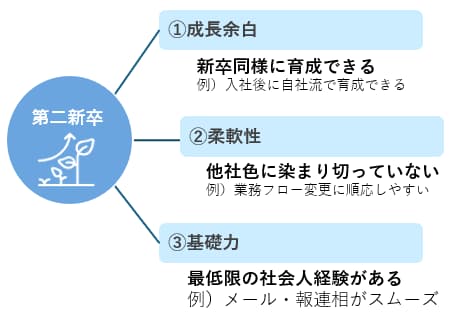 つまり第二新卒は、特定の考え方や手法にとらわれていない素直な若手人材が、