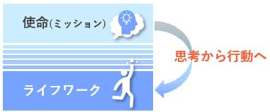 「使命(ミッション)」は「なぜ生きるか」という問いに近く、ライフワークはそれを具体的な行動に落としたものと整理できます。
