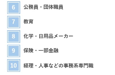6位以下は、職種差や企業差が大きい業界が中心です。重要なのは、「業界」と「職種」は分けて考えることです。